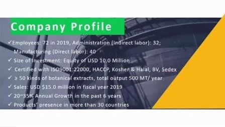 Η HUNAN SUNFULL BIO-TECH CO., LTD.έχει πιστοποιηθεί με ISO9001, ISO22000, Kosher, HALAL & HACCP, ειδικεύεται στην έρευνα και ανάπτυξη, την παραγωγή και την εμπορία υψηλής αξίας πράσινου τσαγιού και βοτανικών εκχυλισμάτων για συμπληρώματα διατροφής, ποτά,Καλλυντικά και φαρμακευτικά προϊόντα.
